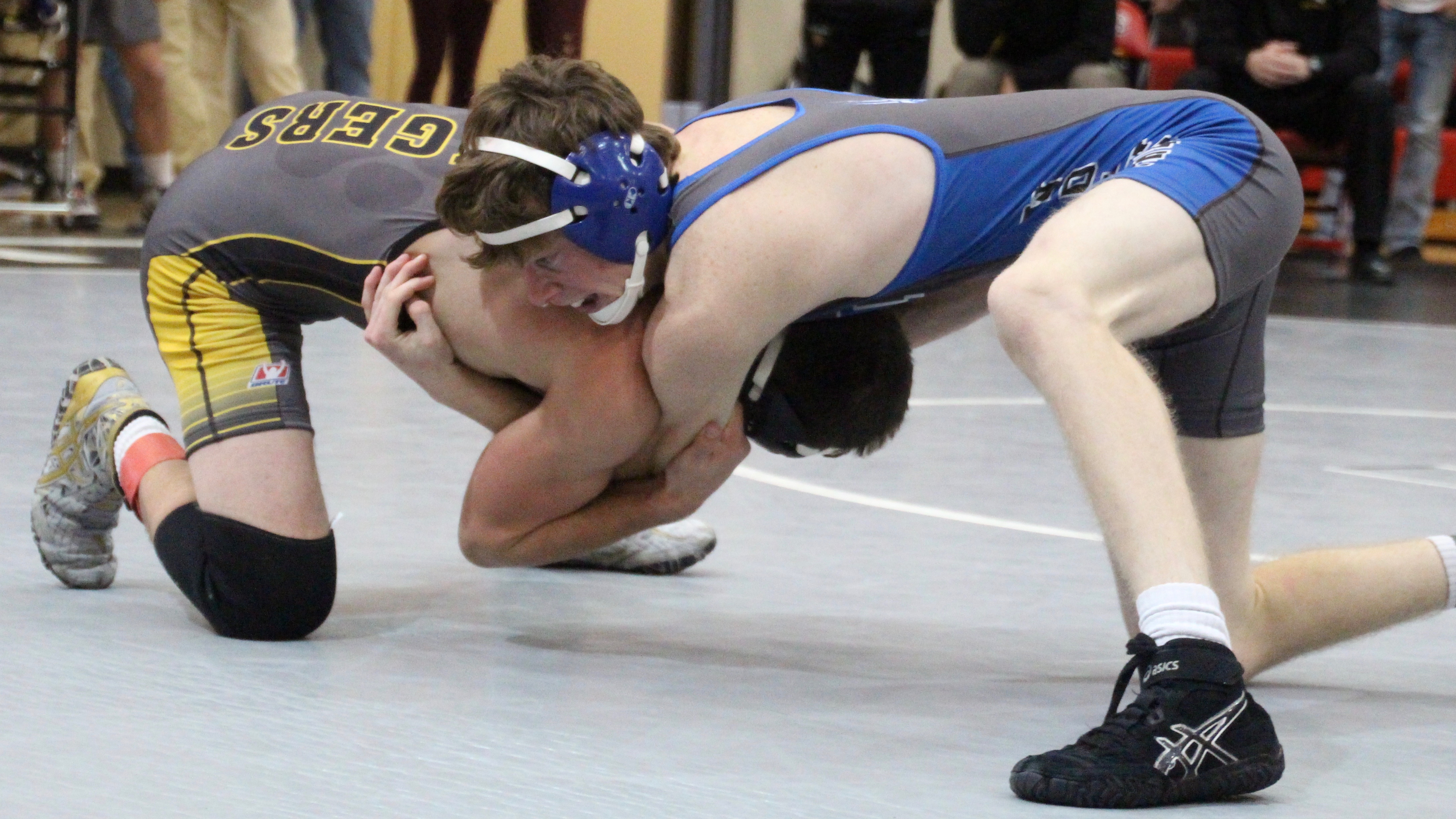 Grundy Center wrestler Nolan Freeman took third place for A-P/GC at 220 pounds by injury default after falling in the semifinals to eventual 220-pound champion Stone Peckham of Crestwood.