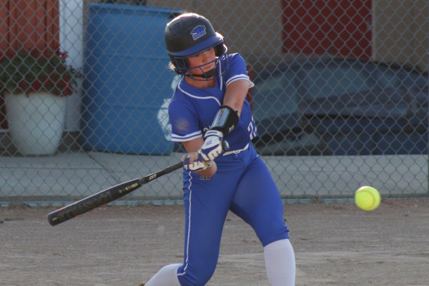 D-NH's Shelby Ohrt makes contact in a game against A-P last Thursday. (Jake Ryder photo)