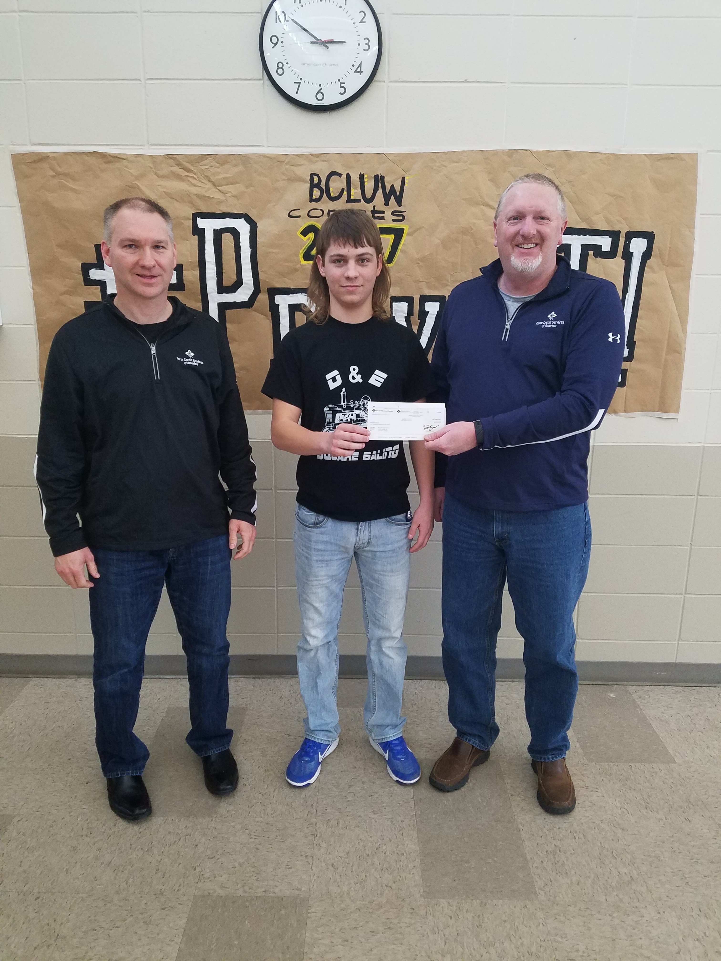 The BCLUW FFA program, thanks to a donation of $6,000 from Farm Credit Services of America, will purchase an aquaponics system, which combines raising water-dwelling animals with supplying nutrients for hydroponic plants, and team up with the Comet Café to use the fish and shrimp for dishes—along with strawberries for dessert—next winter and spring. Vocational Agriculture teacher Tara Leytham and junior Dalton Critchfield, a hunting and fishing enthusiast with aspirations to work for the Department of Natural Resources (DNR) someday, are excited about its potential.