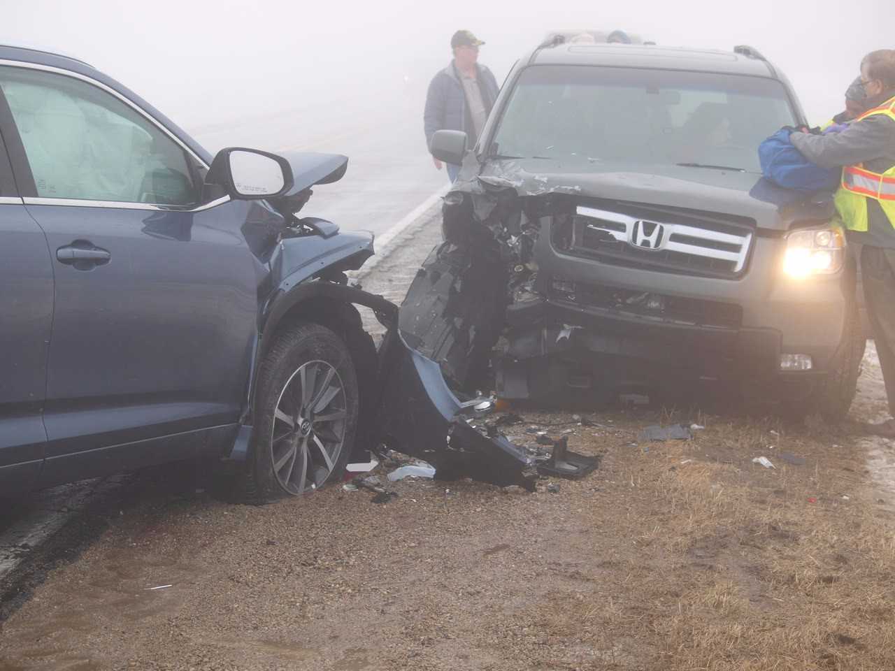 Sixty-four-year old Mark Halsey of Eldora was headed north in a 2018 Toyota Highlander with his 39-year-old son Eric at about 11:00 a.m. when a southbound Honda Pilot driven by 65-year-old Dennis Wilke of Altoona collided with him in the northbound lane. A press release issued by the Grundy County Sheriff’s Office indicated that “dense fog” likely caused the crash, and Sheriff Rick Penning told The Grundy Register that Mr. Wilke was attempting to pass another southbound vehicle when he hit Mr. Halsey’s Highlander, which endured $25,000 worth of damage.