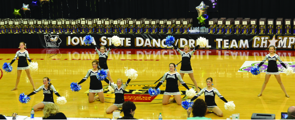 Last Thursday the girls placed first in the Class IV Pom Division to take their second straight state cpom hampionship while also placing third in the Small School Military Division for the second year in a row. Team members include Sydney Hogle, Ally Jansen, Piper Johanns, Emilee Johnson, Dalyn Maxson, Chelsea McNeil, Kate Ross, Megan Salo and Alexa Strickler.