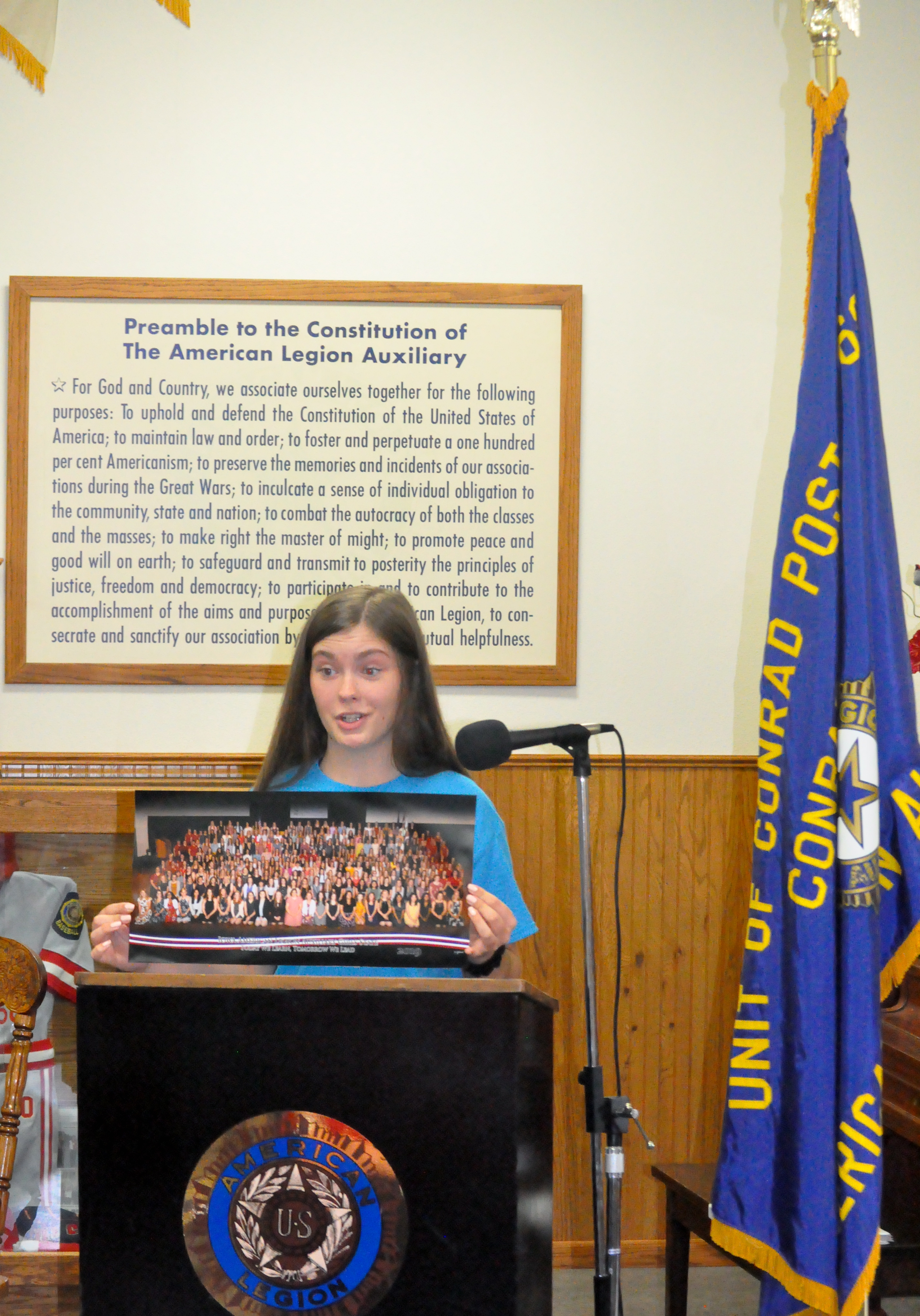 Deidra Green, a BCLUW senior-to-be, was one of over 200 young leaders chosen to attend the annual Girls State convention in Des Moines last week, and as she described it to the women of the Conrad American Legion Auxiliary on Monday afternoon, she learned a ton about the processes of government at all levels throughout the five-day event that ran from June 16-21.