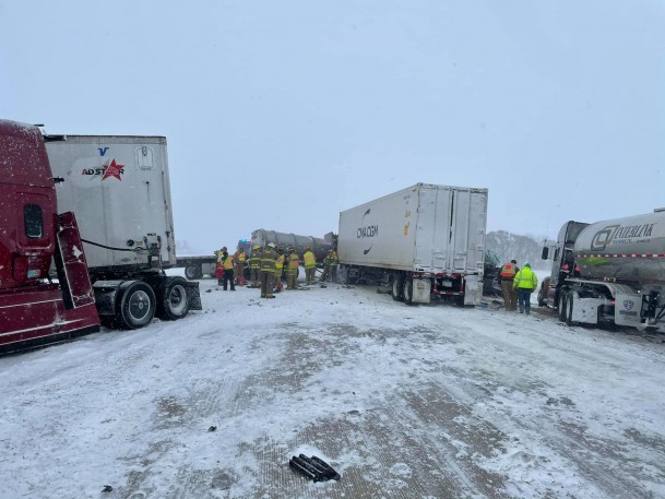 WELLSBURG- Amidst blizzard conditions throughout the area, a 12-vehicle pile-up along Highway 20 in western Grundy County on Thursday afternoon has resulted in several serious injuries and totaled vehicles as well as one confirmed fatality.