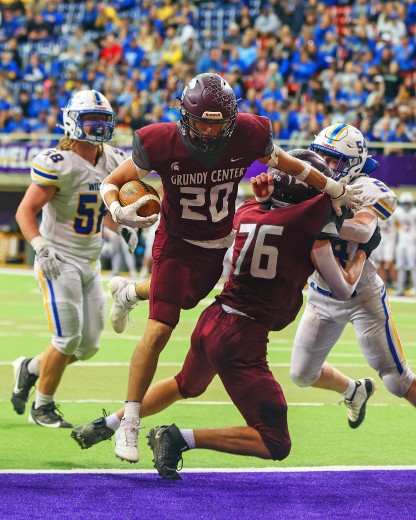 Grundy Center senior Brody Zinkula scored three touchdowns in three separate ways in Friday’s 42-7 State semifinal win over Wilton. Zinkula has been a contributor for the last three Spartans teams and will look to add a third championship title to his football career resume.