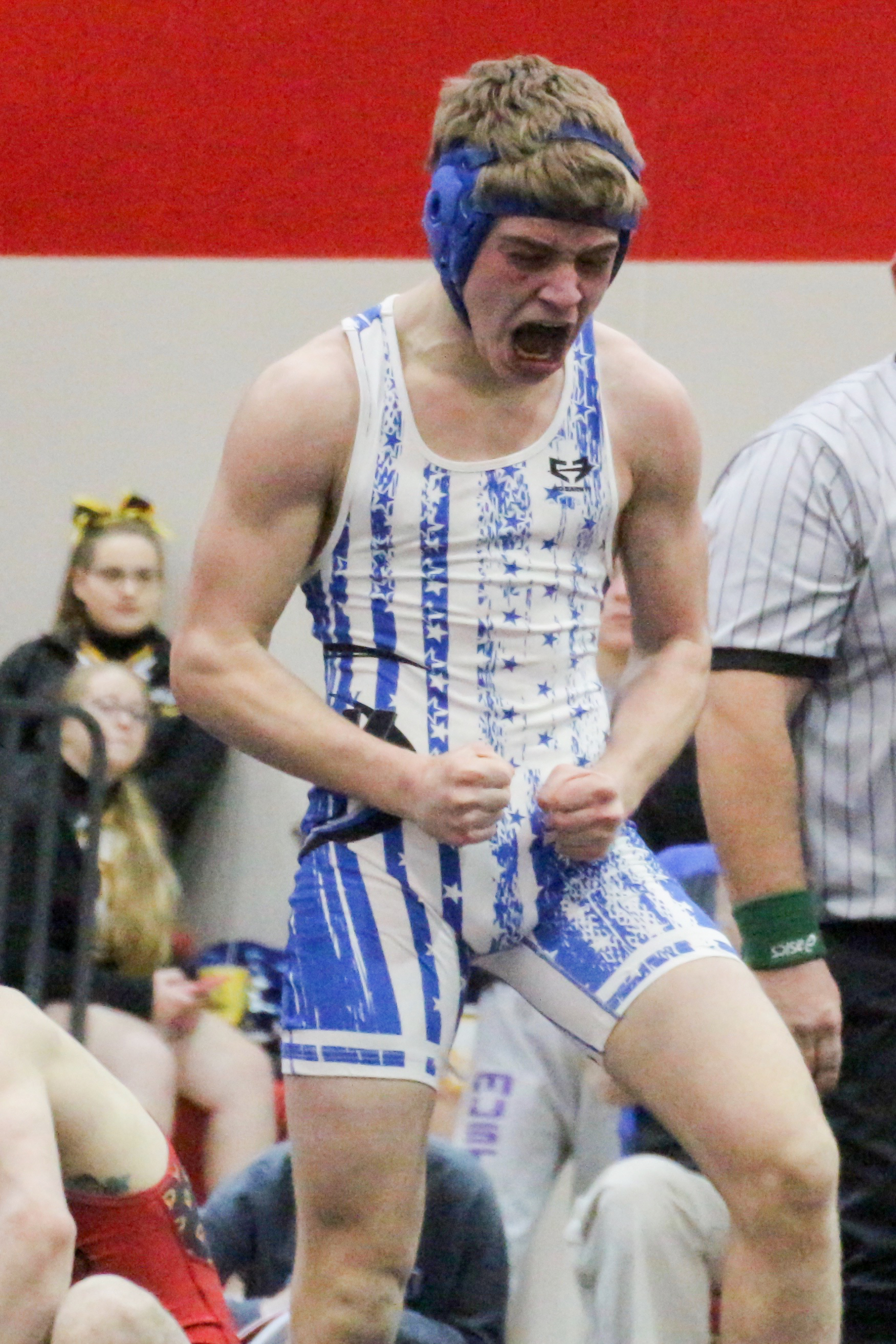 Kolthoff pinned West Marshall's Jacob Vawter in 2:25 in the quarterfinal and held off AGWSR's Trey Lashbrook by a 3-2 decision in an intense semifinal match for Kolthoff's 100th career victory.