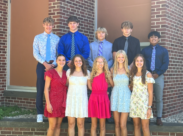 The 2023 AGWSR Homecoming Court. Front row left to right: Karis Lippert, Catelynn Koop, Elizabeth Kielty, Ava Olson, Kierra Dodd. Back row: Gabe Nederhoff, Aiden Heitland, Kaden Abbas, Ryley Bohner, Noah Clikeman. Photo submitted.