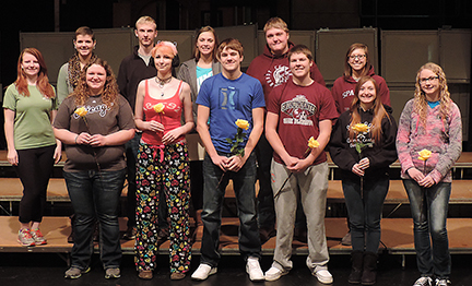 Seven new members were tapped Monday for inclusion in Grundy Center High School’s Maggie Gray Chapter of the National Honor Society. New members included, front row (left to right): Melanie Homeister, Esther Edgerton, Ethan Hogle, Brock Rohler, Gabby Haman and Abby Taylor. Pictured in the back row are current NHS members (l-r): Emily Robinson, Hillary Samo, Espen Cleveland, Kennedy Buss, Andrew Sternhagen and Jessica Ackerson. Not pictured is new inductee Michelle McIntire. The inductees will formally enter the chapter during a ceremony next Thursday (Feb. 13) in the Secondary media center. (Photo courtesy Betsy Kuecker/Grundy Center High School)