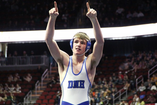 Dike-New Hartford's Nick Reinicke, pictured here at the 2022 state wrestling tournament, is a finalist for the 2023 Mr. Wrestler of the Year award presented by IAwrestle and the IWCOA. (Jake Ryder photo)