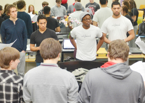 GRUNDY CENTER — Grundy Center High School music students had a rare chance to learn from professionals Monday. Members of the band “ReVoiced” visited with students from the GCHS boys’ ensemble and Madrigal Singers during the school day, prior to their concert that evening.