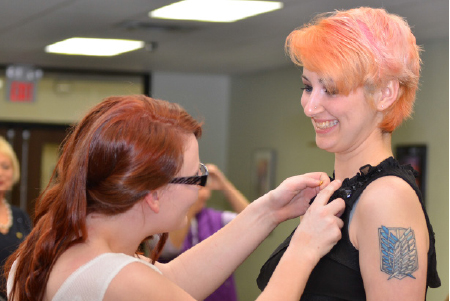 The Maggie Gray Chapter of the National Honor Society at Grundy Center High School inducted seven new members and a surprise honorary member during a ceremony last Thursday. Gabrielle Haman, Ehtan Hogle, Abigail Taylor, Esther Edgerton, Melanie Homeister, Michelle McIntire and Brock Rohler were cited during the ceremony and signed their names into the school’s N.H.S. Register. The chapter also inducted retiring Secondary Principal Steve VanderPol as an honorary member. Pictured, Emily Robinson places a pin Edgerton’s lapel. The membership pins are given by Advisor Beth Bockes in memory of her parents. (John Jensen/The Grundy Register photos)