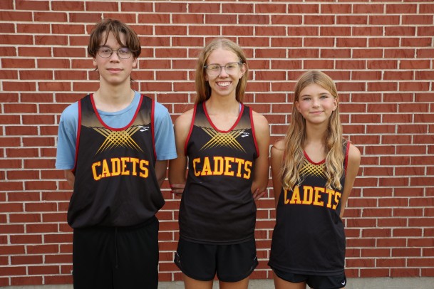 AGWSR runners competing for Iowa Fall-Alden cross country from left to right: Aaron Blackburn, Elizabeth Kielty and Chloe Stilwell.