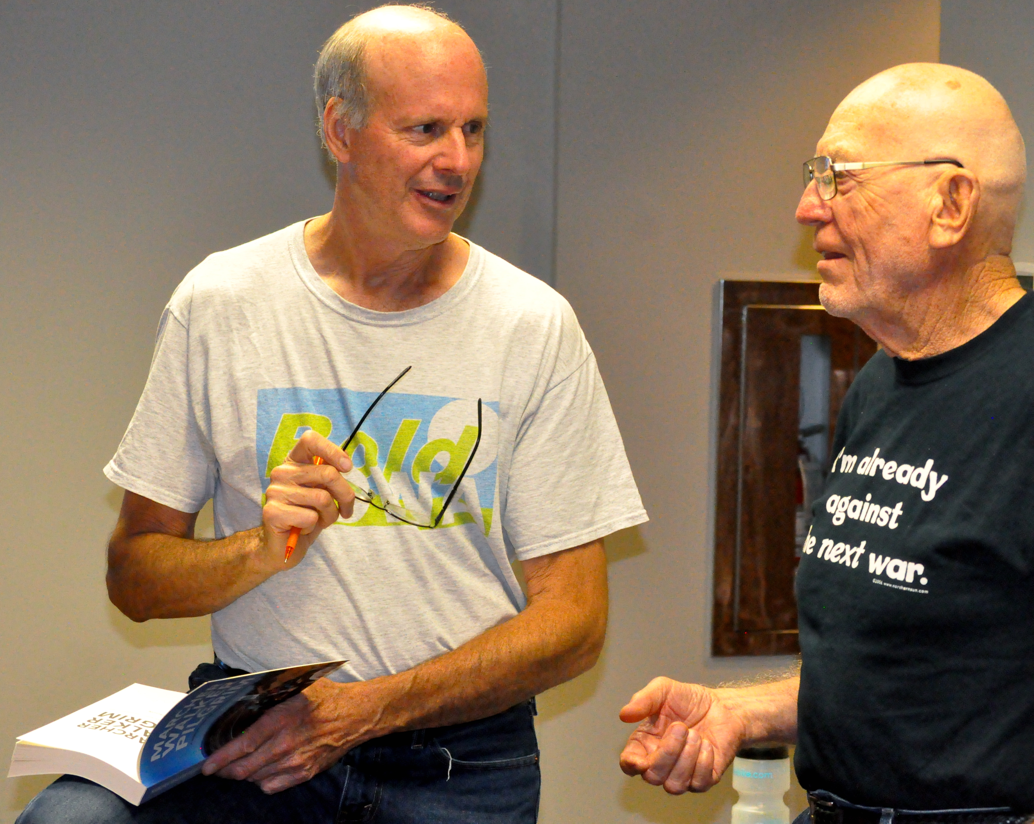 Between March and November of 2014, Fallon and a group of about 50 others marched from Los Angeles to Washington, D.C.—passing through his home community of Des Moines along the way—and he shared his story, chronicled in the book Marcher, Walker, Pilgrim: A Memoir from the Great March for Climate Action at the Kling Memorial Library in Grundy Center during an event hosted by the Ivester Church of the Brethren last Thursday night.