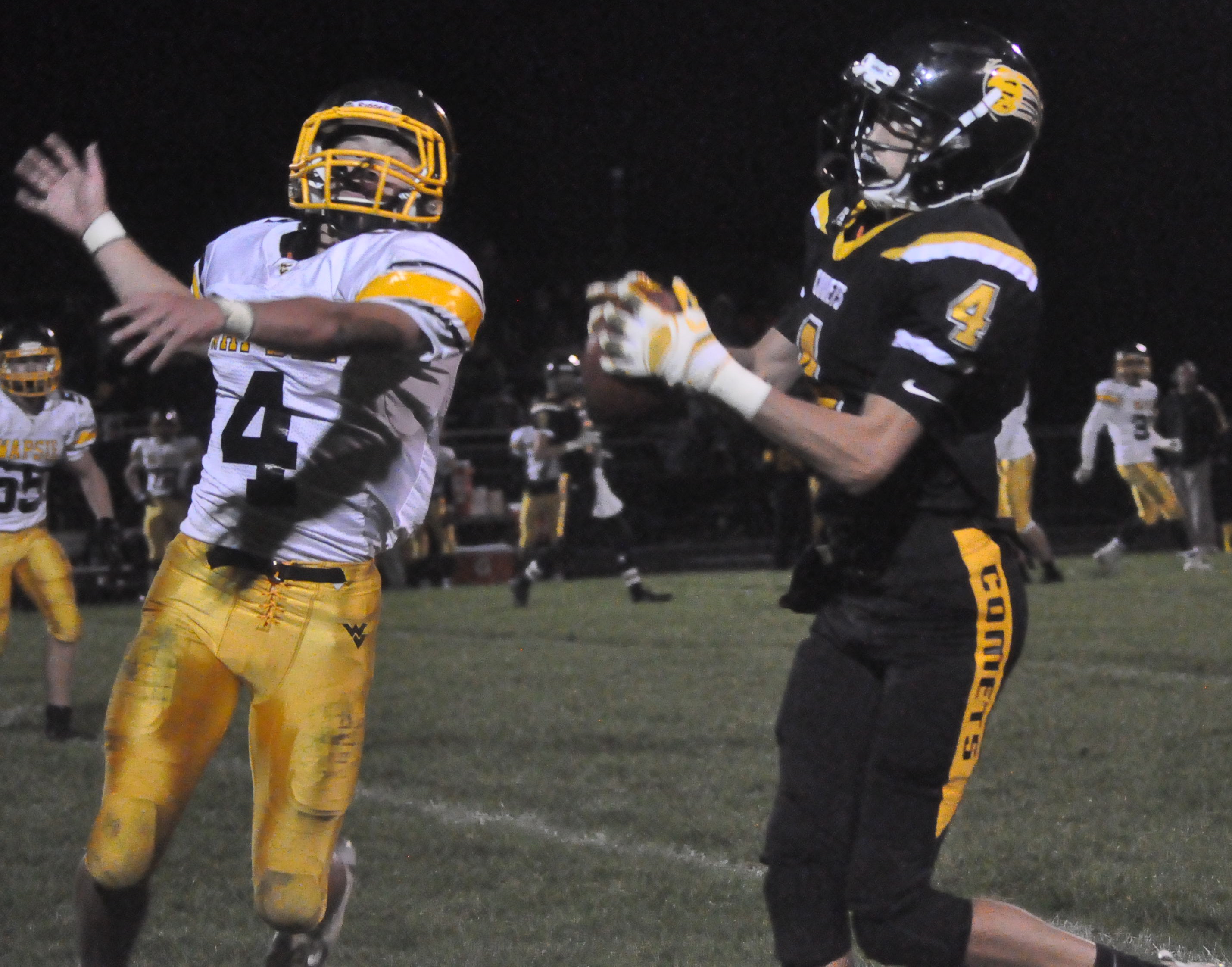 In an indication of what was to come, Comet quarterback Jessie Moore and running back Koty Kruse fumbled the exchange on the first play of the next drive and gave the ball right back to the Warriors. Sauerbrei scored again, and it was 20-0 after one quarter.