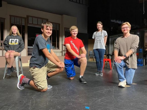 Seniors involved with the show (from left to right): Megan Murty, Lane Schnathorst, Dillon Jacobson, Britlynn Klaas and Zach Stanfield. Not pictured: Noah Cross and Abigail Frank. (Courtesy of Jackie Stevens)