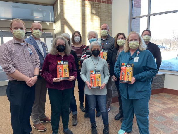 The Woman’s Club thanked local frontline healthcare workers by presenting a thank you note to each staff member of the Grundy County Memorial Hospital, the UnityPoint Family Medicine Clinic, and the Grundy Center Ambulance Department. Over two hundred KIND snack bars made with wholesome ingredients including real fruit and nuts were distributed by the hospital’s Joy committee on behalf of the Woman’s Club. A thank you note to the workers was attached to every snack bar that read “Working as a team, you have met the ever-changing challenges of the past two years. We’re proud of the care and commitment you show every day. Thank you for your KIND-ness!”