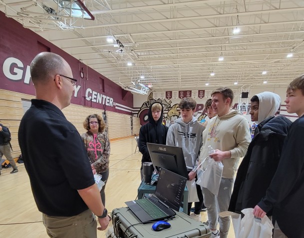 Grundy Center High School provided the space for a high school career fair provided by the Butler-Grundy Development Alliance, held last Wednesday, Jan. 11. Five schools brought nearly 400 students to check out 23 businesses and employers exhibiting in the high school gymnasium. The event was focused on manufacturing, value-added ag, healthcare and finance jobs due to space limitations and other business sectors will be represented in future events. The Butler-Grundy Development Alliance thanked the high school, Grundy County REC and Stacy Ascher with Cedar Valley West for their work in making the career fair possible. (Molly Kahler photo)