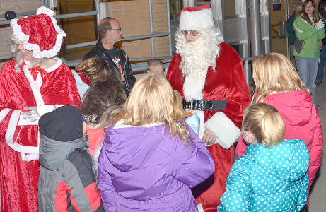 Santa paid a visit to downtown Conrad on Saturday night as part of the city’s annual “Christmas in Conrad” celebration on Main Street. Businesses hosted a variety of events for both children and adults, and youngsters got the chance to go over their Christmas lists with St. Nicholas himself. (John Jensen/The Grundy Register photo)