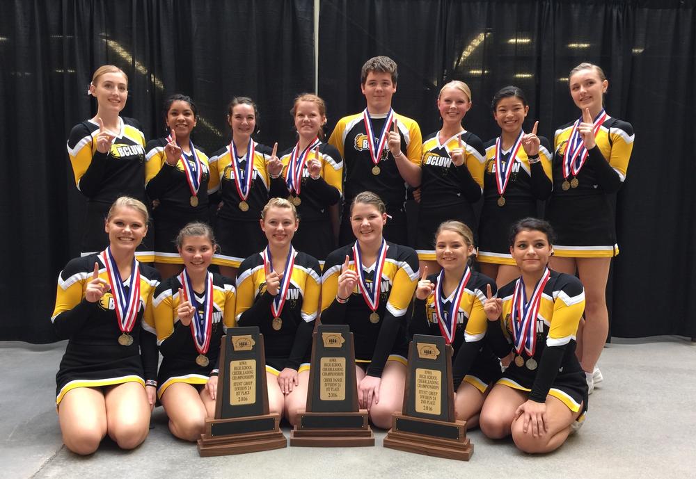 After winning in Class 1A the last two years, BCLUW bumped up to 2A and won again, besting 12 other schools in their class for the top prize. The Comets also had one stunt group win first place, and another took second. For coach Kelly Trinkle, winning a championship is just as sweet every year.