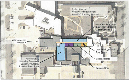 Hosptial CEO Jennifer Havens said the renovation, which has been in the planning stages for years, would bring upgrades to the original 1952 building’s roof, windows and soffits as well as its mechanical systems including heating and air conditioning. The renovation would allow administration and other support functions to be relocated from the first to the second floor, with that space used to allow needed expansion of the hospital’s specialty clinic area.