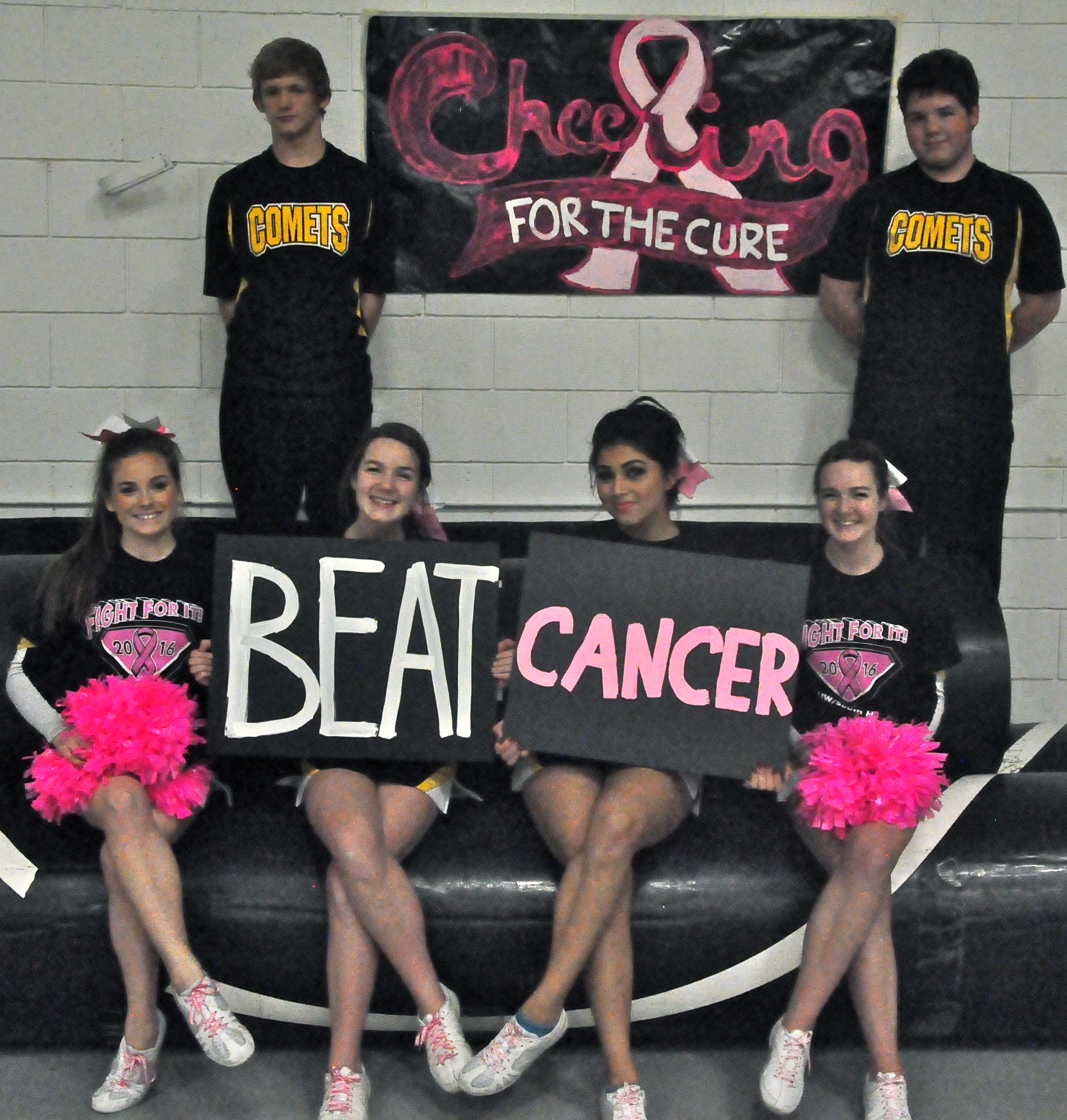 The “Black Out Cancer” event at BCLUW High School featured a free will donation pancake dinner, a silent auction with a host of goods donated by local businesses, special t-shirts, players and cheerleaders wearing pink to support breast cancer research and a special “Pie a Teacher in the Face” contest at halftime of the boys’ game to benefit the families of BCLUW High School library aide Kelly Hoover and Yolanda Butler (the wife of Industrial Arts teacher David Butler), who are both battling breast cancer, as well as elementary janitor Rick Mull, who is also battling cancer. All three are in the midst of receiving chemotherapy treatment.