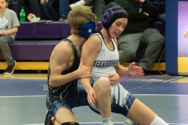 AGWSR's Ali Gerbracht tries to work free of SH-BCLUW's Carter Kolthoff on Thursday. (Jake Ryder photo)