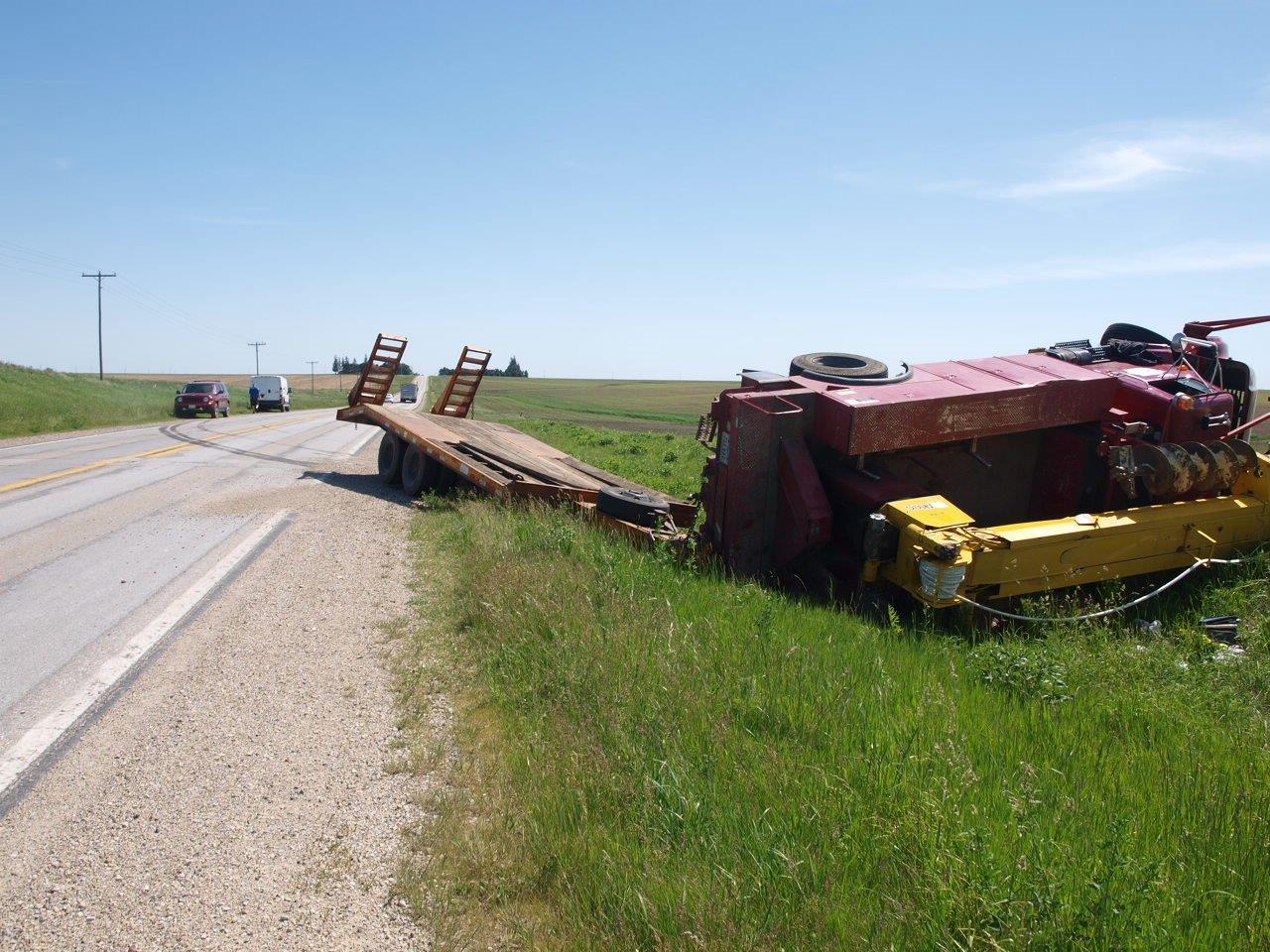 A boom truck suffered approximately $5,000 in damage after rolling over just south of the Highway 175/Highway 14 intersection west of Grundy Center on Thursday afternoon.