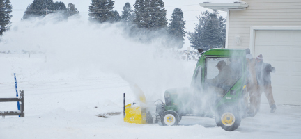 After a warmer than average December, winter hit Grundy County with a vengeance this week, with the season’s first major snow storm and the area’s sharpest cold snap since last February. Monday’s snowstorm dropped between four and six inches of powder on the area and was followed by bitterly cold temperatures. Monday night’s official low in Grundy Center was 14 degrees below zero, and predictions for later in the week called for even colder readings. Pictured is the digging-out process from Monday’s snow. (John Jensen/The Grundy Register photo)
