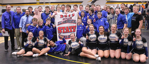In the 28-year history of the State Dual Wrestling Tournament, 143 different schools had qualified, not one of which had been from Grundy County ... until now. Last Tuesday Dike-New Hartford became the first Grundy County school to qualify for the duals, upsetting fifth-ranked Eddyville-Blakesburg for the dual team title. The 10th-ranked Wolverines (26-4 in duals) faced third-ranked Alburnett in the first round of the duals Wednesday at the Wells Fargo Arena in Des Moines. Results of the meet will be posted to The Grundy Register web site and Facebook page. Patti Rust’s complete recap of the meet will be printed in next week’s Grundy Register. More on the dual regionals as well as the traditional district meet is on today’s sports pages. (Patti Rust/The Grundy Register photo)